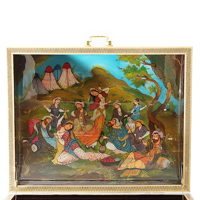 در صندوقچه مزین به نقاشی مینیاتور که روحی هنری و منحصر به فرد به این اثر می بخشد.
