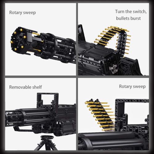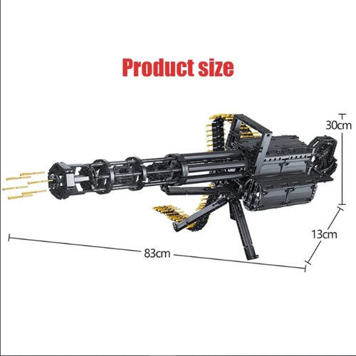 طراحی این مدل از روی مسلسل گتلینگ الهام گرفته شده و شامل جزئیاتی مانند لولههای چرخان، تسمههای گلوله، و پایه نگهدارنده است. این ویژگیها باعث میشود محصول نهتنها برای بازی، بلکه برای نمایش و دکور نیز مناسب باشد.